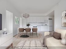 Viihtyisä kolmannen kerroksen kulma-asunto, johon tulee valoa kahdesta ilmansuunnasta. Keittiö ja olohuone ovat yhtenäistä tilaa. Olohuoneesta on lasitetulle parvekkeelle, joka toimii lisähuoneena alkukeväästä myöhäiseen syksyyn. Makuuhuoneet ovat tilavia ja niiden yhteydestä löytyy hyvin säilytystilaa. Neutraalinsävyiset pintamateriaalit toimivat hyvänä pohjana omannäköiselle sisustukselle.