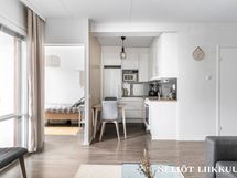 Nyt on tilaisuus hankkia valoisa ja viihtyisä kaksio Herttoniemen rauhalliselta alueelta, josta on erinomaiset liikenneyhteydet Helsingin keskustaan. Tämä 44 neliömetrin asunto sijaitsee vuonna 1999 valmistuneen talon neljännessä kerroksessa, tässä on oma sauna sekä lasitettu parveke. Keittiö on uusittu vuonna 2017, samoihin aikoihin päivitetty pinnat, joten asunnon yleisilme on siisti.