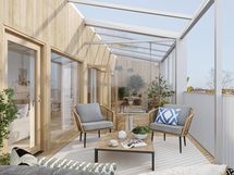Yksityiskohdat, jotka tekevät eron: Ensimmäisen kerroksen asunnoissa nautit omasta pergola-terassipihasta, joka kutsuu rentoutumaan ja viettämään aikaa ulkona. Ylimmän kerroksen asukkaat puolestaan pääsevät nauttimaan upeista näkymistä ja auringosta hulppeilla terassiparvekkeilla.