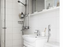 - Pesutilojen kuvaus: Kylpyhupne remontoitu 2012 linjasaneerauksen yhteydessä. Suihku, suihkuseinä, peilikaappi, allaskaappi, kuivauspatteri. Pesukoneliitäntä, lattialämmitys. Seinät kaakelia, lattiat laattaa. .
