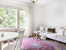 - Maisemat avautuvat kahteen ilmansuuntaan. Makuuhuoneesta aukeaa vehreät ja puistomaiset näkymät Haukiladenpuistikkoon. Olohuoneesta ja ranskalaiselta parvekkeelta aukeaa vehreät maisemat sisäpihan suuntaan.