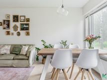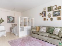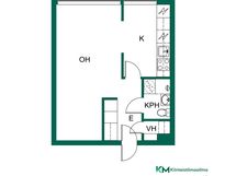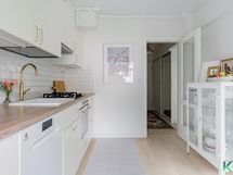 - Kylpyhuone, suihku, suihkuseinäkkeet, peilikaappi, pesuallas, allaskaappi, pesukoneliitäntä, pyyhekuivain, lattialämmitys