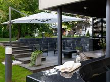 - Kuvaus: Saunaosasto oleskelutiloineen yhdistyy sulavasti terassipihalle. Alakerran kylpyhuoneesta löytyy myös sisäporeallas.