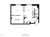 - 1h, alkovihuone, kph, erill.wc (yht. järj. 2h,kk)