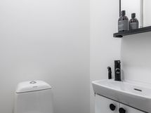 - Pesutilojen kuvaus: KH: Sadesuihku, pesuallas, allaskaappi, peilikaappi, kiinteät valot. Sähkötoiminen
