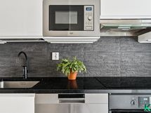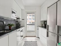 - Jääkaappi/pakastinx2, integroitu mikro, keraaminen liesitaso, pyrolyysiuuni, kvartsikomposiittitasot, liesituuletin/ aktiivihiilisuodatin