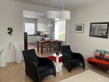 - Tilaa isolle ruokapöydälle, Astianpesukone, Liesituuletin, Induktioliesi, Jää-pakastinkaappi, Paljon kaappitilaa, Kivitasot