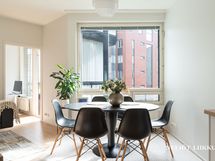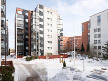 - Päämakuuhuoneesta näkymä itään kaupungin suuntaan, pienemmästä huoneesta ja ruokailutilasta taloyhtiön pihalle suunta etelä-kaakko.