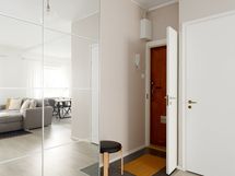 - Pesutilojen varusteet: Suihkuseinä, pesukoneliitäntä, sadesuihku, lattialämmitys (sähkötoiminen), kylpyhuonekaapisto, wc-istuin ja peilikaappi.