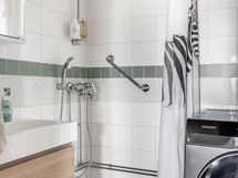- Kylpyhuone, suihku, peilikaappi, allaskaappi, pesukoneliitäntä, kiinteät valaisimet. Kylpyhuone on remontoitu vuonna 2007.