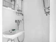 - Varusteet: suihku, WC, pesukoneliitäntä, peilikaappi. 2011 taloyhtiön remontoima kylpyhuone