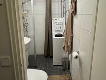 - Suihku, Suihkuseinä, Pesukonevalmius, Rättipatteri, Allaskaappi, Peilikaappi, Laattalattia