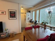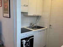 - Tilaa isolle ruokapöydälle, Laminaattitasot, Pesukoneliitos, Sähköliesi, Liesituuletin, Jää-pakastinkaappi
