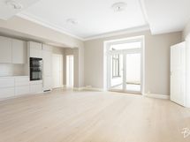 Laadukkaista keittiöistään tunnetun italialaisen Scavolinin valmistama tyylikäs avokeittiö, ruokailutila ja olohuone ovat yhtä suurta tilaa ja erinomaiset seurusteluun. Olohuoneesta kulku pariovien kautta suurelle parvekkeelle, joka avautuu etelän suuntaan.