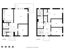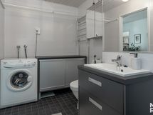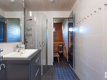 - Pesutilojen kuvaus: Yläkerran kylpyhuone remontoitu vuonna 2016. Varustus: suihkuseinä, pesukoneliitäntä, lattialämmitys, wc-istuin, suihku, peili, kylpyhuonekaapisto. Erillisen WC:n kuvaus: Alakerran kylpyhuone remontoitu v 2023. Varustus: suihku, suihkuseinä.