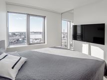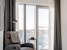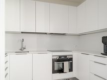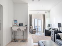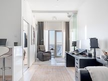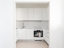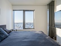 Tämä koti on erityisen valoisa, avara ja ikkunapinta-alaa on runsaasti. Valtavista ikkunoista on pysäyttävät näkymät, jotka on nähtävä paikanpäällä! Avokeittiöön on valittu vaaleat ajattomat kaapistot, jotka tuovat tyylikkyyttä asuntoon. Oleskelutilaan saat helposti sohvan ja tilaa riittää myös pienelle ruokapöydälle. Kylpyhuone on tilava ja pesukoneellekin löytyy tilaa. Asunnossa sijaitsevat kiinteät kaapistot makuuhuoneessa sekä eteisessä takaavat kattavat säilytystilat.