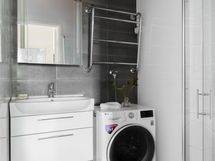 - Pesutilojen kuvaus: kuivauspatteri. Varustus: suihkuseinä, pesukone, pesukoneliitäntä, suihku, peili, kiinteät valaisimet, kylpyhuonekaapisto. Erillisen WC:n kuvaus: peili.