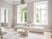 - Kaikki huoneiston kuusi ikkunaa Unioninkadun puolelle