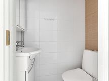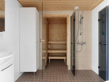Arjen luksusta tuo myös oma sauna, jossa on mukava rentoutua pitkän päivän jälkeen. Selkeät ja helppohoitoiset tilat tekevät kodista toimivan niin arjen rutiineihin kuin viikonlopun yhdessäoloon. Arjen käytännöllisyyttä lisää erillinen wc, joka mahdollistaa rauhan aamun hulinoihin.