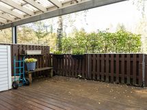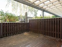- Aidattu piha, joka on tehty kokonaisuudessaan terassiksi. Terassi kaipaa pientä kunnostamista.