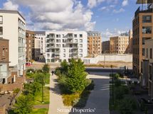 - Näkymät kansipihalle, jossa istutuksia ja lasten leikkipaikka.