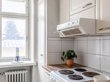 - Liesi: sähköliesi. Työtasot: laminaatti. Kylmäsäilytys: jääkaappi/pakastin. Varustus: liesituuletin.