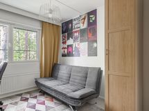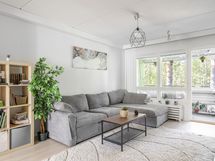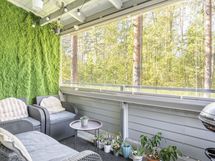 Asunto sijaitsee talon toisessa kerroksessa, ja sen parvekkeelta avautuu upea näkymä suoraan metsään, ja lasitettu parveke antaa tilan missä voi nauttia luonnon rauhasta omassa kodissa.