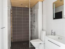 - Kylpyhuone: suihku, suihkuseinä, pesukoneliitäntä, peilikaappi, kylpyhuonekaapisto, sauna, lattialämmitys. Erillinen wc: wc, bidee-suihku, peili.