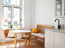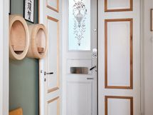 - Puustellin Miinus-keittiö, Tapwellin musta hana, integroitu jääkaappi/pakastin, astianpesukone ja kaksipisteinen induktiotaso.