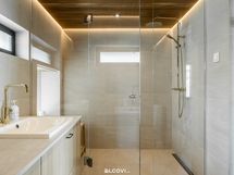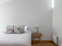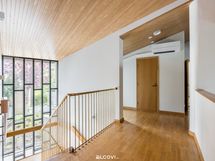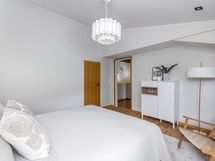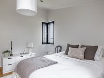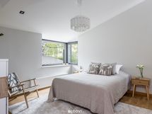 Keskikerroksessa sijaitsee päämakuuhuone, jonka yhteydessä on tilava walk-in-vaatehuone sekä skandinaavisin sävyin viimeistelty, tyylikäs kylpyhuone. Yläkerrasta löytyy kolme makuuhuonetta, avara aula, runsaasti säilytystilaa sekä toinen kaunis kylpyhuone.