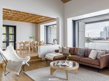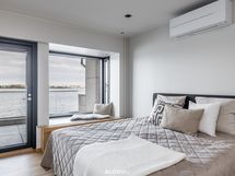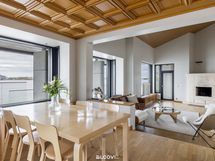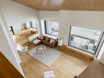 Talon sydämen muodostaa näyttävä olohuone, jossa korkea huonetila, upeat näkymät merelle ja elegantti takka luovat ainutlaatuisen tunnelman. Tilasta on käynti katetulle parvekkeelle, joka on täydellinen paikka kesäpäivistä nautiskeluun.