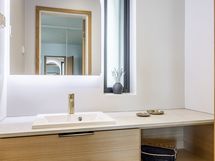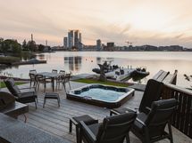 Alimman kerroksen saunaosasto on kokonaisuus, joka todella erottuu edukseen: sekä perinteinen puusauna että sähkösauna tarjoavat nautinnolliset löylyt. Näyttävä, erinomaisella maulla ja laadusta tinkimättä toteutettu saunaosasto tarjoaa loistavat puitteet illanviettoihin. Tunnelmallisesta oleskelutilasta on suora käynti ulos, missä ulkoporeallas kutsuu rentoutumaan merimaisemissa ihastellen kaupungin siluettia.