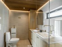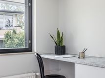 Kellaritiloihin sijoittuu lisäksi tilava kodinhoitohuone sekä viihtyisä sivuasunto, jossa on oma sisäänkäyntinsä. Sivuasunto sopii loistavasti vieraiden majoittamiseen, työskentelyyn tai esimerkiksi lastenhoitajan käyttöön.