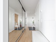 - Pesutilojen kuvaus: Tilava kylpyhuone modernilla värimaailmalla. Varustus: suihkuseinä, pesukoneliitäntä, lattialämmitys, wc-istuin, suihku, peilikaappi, kylpyhuonekaapisto. Erillisen WC:n kuvaus: Yhtenevä ilme kylpyhuoneen kanssa. . Varustus: peilikaappi, bidee-suihku.