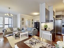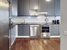 - Liesi: keraaminen. Työtasot: laminaatti. Kylmäsäilytys: jääkaappi, pakastin. Varustus: liesituuletin, astianpesukone.