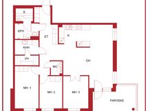 - Varustus: suihkuseinä, lattialämmitys, wc-istuin, suihku, peilikaappi, kylpyhuonekaapisto. Erillisen WC:n kuvaus: Peilikaappi ja allaskaapisto. Varustus: lattialämmitys, bidee-suihku.