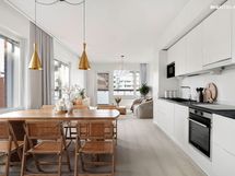 Gunnelista löytyy valoisia ja fiksusti suunniteltuja koteja niin sinkulle kuin isollekin perheelle. Valtaosassa koteja on iso lasitettu parveke, jolla on ihana viettää aikaa sisäpihan vehreyttä ihastellen tai kaupungin elämää ihmetellen. Lattioita peittää lämminsävyinen lattia ja keittiössä ilahduttavat Puustellin kalusteet, induktioliesi sekä integroitujen kodinkoneiden luoma rauhallinen yleisilme. Runsaat säilytystilat auttavat arjen organisoimisessa, ja useimmista kodeista löytyy sopiva soppi työpisteelle.