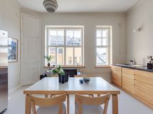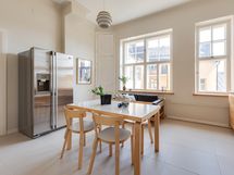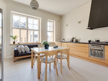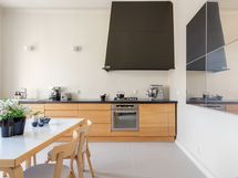 - Keittiön varusteet: Liesi, liesituuletin, erillisuuni, astianpesukone, jääkaappipakastin ja kiinteät valaisimet. Liesi: Kaasuliesi ja erillisuuni. Työtason materiaali: Kivi. Keittiön Saarnikaapistot (artesaanipuusepän Antti Timosen tekemät), koneet ja pinnat uusittu 02/2009. Suunnittelija Sisustusarkkitehti Hanni Koroma. Keittiössä vesikiertoinen lattialämmitys.
