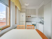 - Keittiön varusteet: Astianpesukone, liesituuletin, liesi ja jääkaappipakastin. Liesi: sähköliesi. Työtason materiaali: Laminaatti.