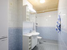 - Pesutilojen varusteet: Suihku, peili, wc-istuin ja kiinteät valaisimet. Pesutilojen kuvaus: Paikka pyykinpesukoneelle tai pesutornille löytyy kylpyhuoneesta, mutta pesukoneliitäntä asennettava.