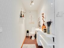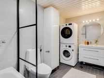- Pesutilojen varusteet: Lattialämmitys, pesukoneliitäntä, suihkuseinä, kylpyamme ja wc-istuin. Pesutilojen kuvaus: Kylpyhuone uusittu 2022. Erillisen WC:n varusteet: Bidee-suihku.