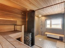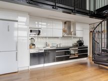 - Keittiön varusteet: Astianpesukone, erillisuuni, jääkaappipakastin, liesi, liesituuletin, mikroaaltouuni ja kiinteät valaisimet. Liesi: Induktioliesi ja erillisuuni.