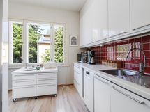 - Keittiön varusteet: Jääkaappipakastin, astianpesukone, liesi, erillisuuni ja liesituuletin. Liesi: Induktioliesi ja erillisuuni. Keittiö uusittu noin v. 2010.