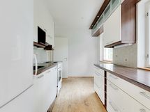 - Keittiön varusteet: Jääkaappipakastin, liesituuletin, liesi, astianpesukone ja kiinteät valaisimet. Liesi: sähköliesi. Työtason materiaali: Laminaatti.