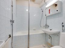 - Pesutilojen varusteet: WC-istuin, kylpyamme, peilikaappi ja pesukoneliitäntä.