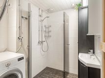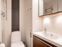 - Pesutilojen varusteet: Lattialämmitys, peilikaappi, suihkuseinä, pesukoneliitäntä ja asennettuja erikoisvarusteita, kiinteät valaisimet. Pesutilojen kuvaus: kph ja sauna remontoitu v. 2018. Erillisen WC:n varusteet: Bidee-suihku ja peilikaappi. Erillisen WC:n kuvaus: wc remontoitu v. 2010.