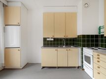 - Keittiön varusteet: Erillinen pakastin, liesi, jääkaappi ja varattu paikka astianpesukoneelle, kiinteät valaisimet. Liesi: sähköliesi. Työtason materiaali: Laminaatti.