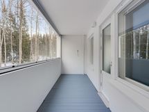 Suuri lasitettu parveke tuo kotiin lisää avaruutta ja mahdollisuuden nauttia valosta vuoden ympäri. Tavarat saa kätevästi säilöön lämpimään irtaimistovarastoon, joka kuuluu jokaiselle asunnolle.