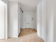 Asunnon tilava ja valoisa pohjaratkaisu sopii erinomaisesti niin pariskunnalle, pienelle perheelle kuin kaupunkilaiselle, joka arvostaa helppoa arkea ja vaivattomia liikenneyhteyksiä. Kodissa on käytännöllinen avokeittiö, johon on tehty muutostöinä astianpesukoneen ja eteisen peilikaappien asennus.