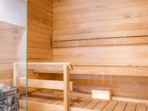 - Kuvaus: Vaalea paneloitu sauna, Harvian pilarikiuas. sähkökiuas
